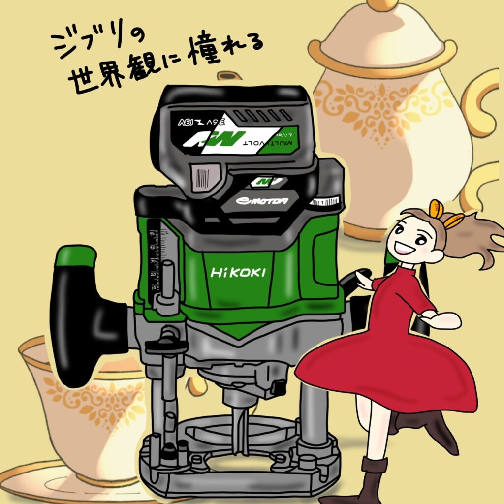 当社の社長でもある夫は、わりとモノづくりが好きなんですよ。子どもが小さい時は本棚や引き出し付きの棚とか、かなりのハイクオリティな作品を作ってくれたんです。で、夫に聞いてみる。DIYの時に欲しい工具ってなあに?夫いわく「今なら断然ルーターかな」と。ルーターって木を切る工具なんですが、窓抜きをしたり、溝を入れたりできて、仕上がりがキレイなんです。昔のアニメのお父さんの日曜大工といえば、木をノコギリで切って釘でトンテンカンでしたが、今は違います。キレイに溝を掘って木を組み合わせて家具を作ったりできるんです。直線に溝を掘るのもルーターだと正確にできるので、大きめな家具も作れます。両手で持ちながら使うので、安定感も抜群です。ワンランク上のDIYを目指すなら、ルーターはぜひおすすめ。