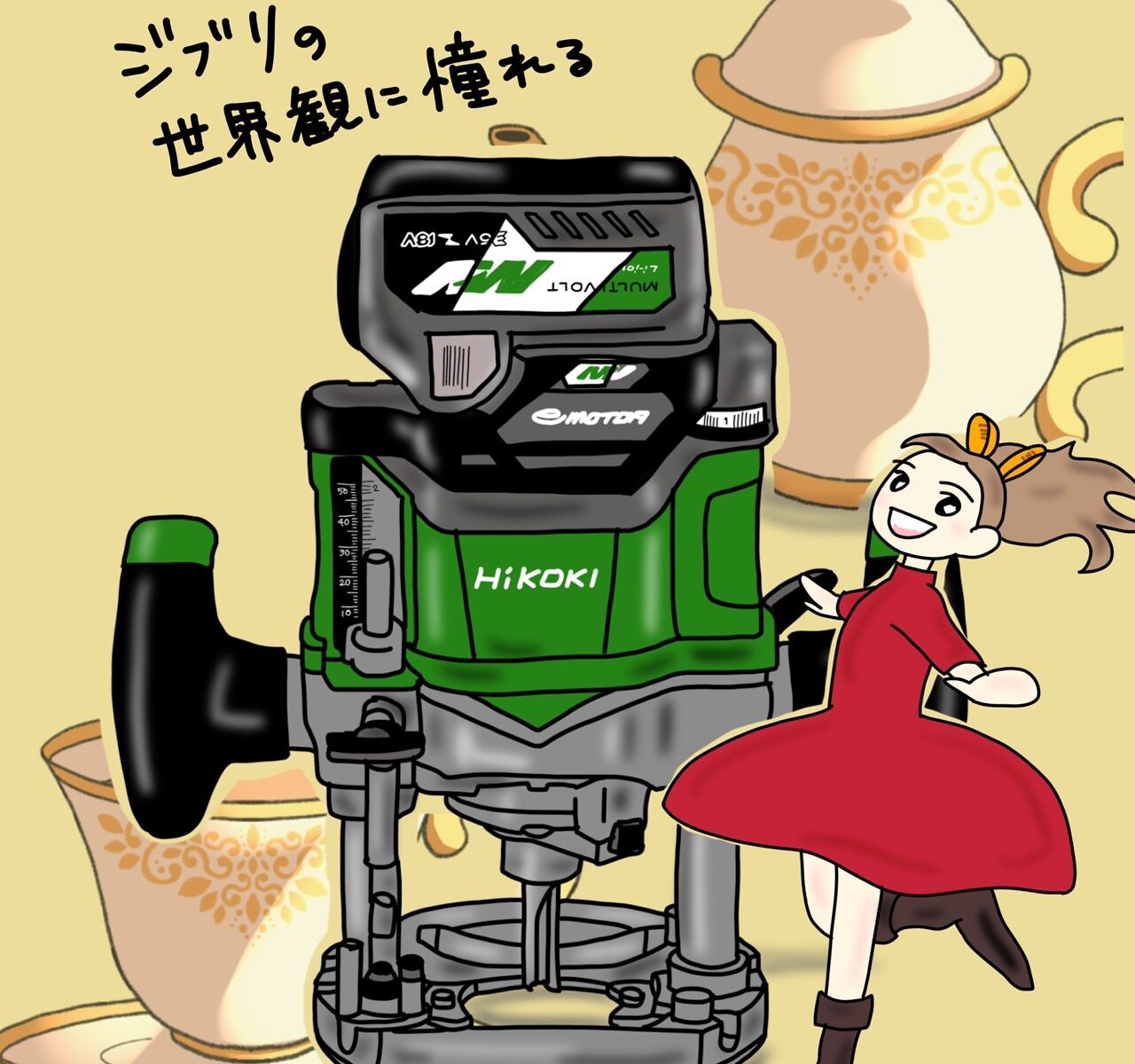 当社の社長でもある夫は、わりとモノづくりが好きなんですよ。子どもが小さい時は本棚や引き出し付きの棚とか、かなりのハイクオリティな作品を作ってくれたんです。で、夫に聞いてみる。DIYの時に欲しい工具ってなあに?夫いわく「今なら断然ルーターかな」と。ルーターって木を切る工具なんですが、窓抜きをしたり、溝を入れたりできて、仕上がりがキレイなんです。昔のアニメのお父さんの日曜大工といえば、木をノコギリで切って釘でトンテンカンでしたが、今は違います。キレイに溝を掘って木を組み合わせて家具を作ったりできるんです。直線に溝を掘るのもルーターだと正確にできるので、大きめな家具も作れます。両手で持ちながら使うので、安定感も抜群です。ワンランク上のDIYを目指すなら、ルーターはぜひおすすめ。