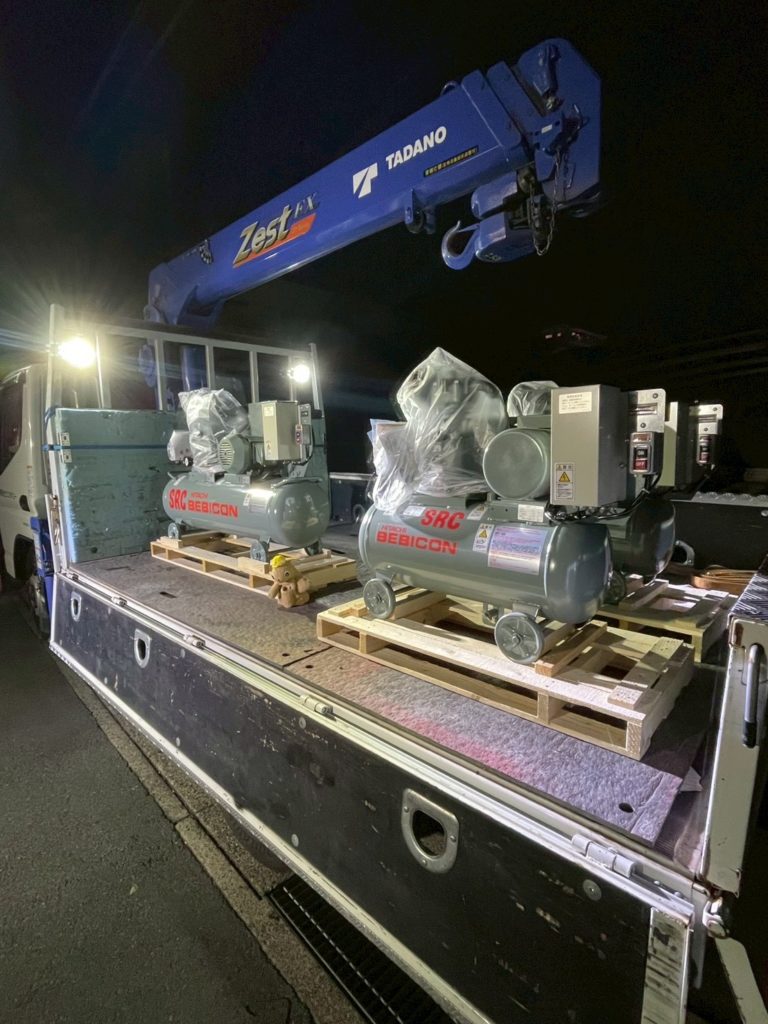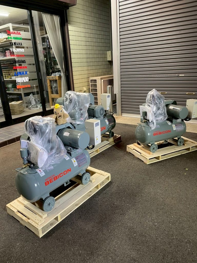 エアー工具や工作機械をお使いのお客様にコンプレッサーを販売しております。解体作業の現場は多種多様なものが多く、お使いの工具の種類や使用台数などにより、コンプレッサー選定のポイントも変わってきます。今回のご要望は安定したエアーの供給が長時間稼働できる事、とのことでしたので、人気の日立産機システムのベビコンを販売いたしました。